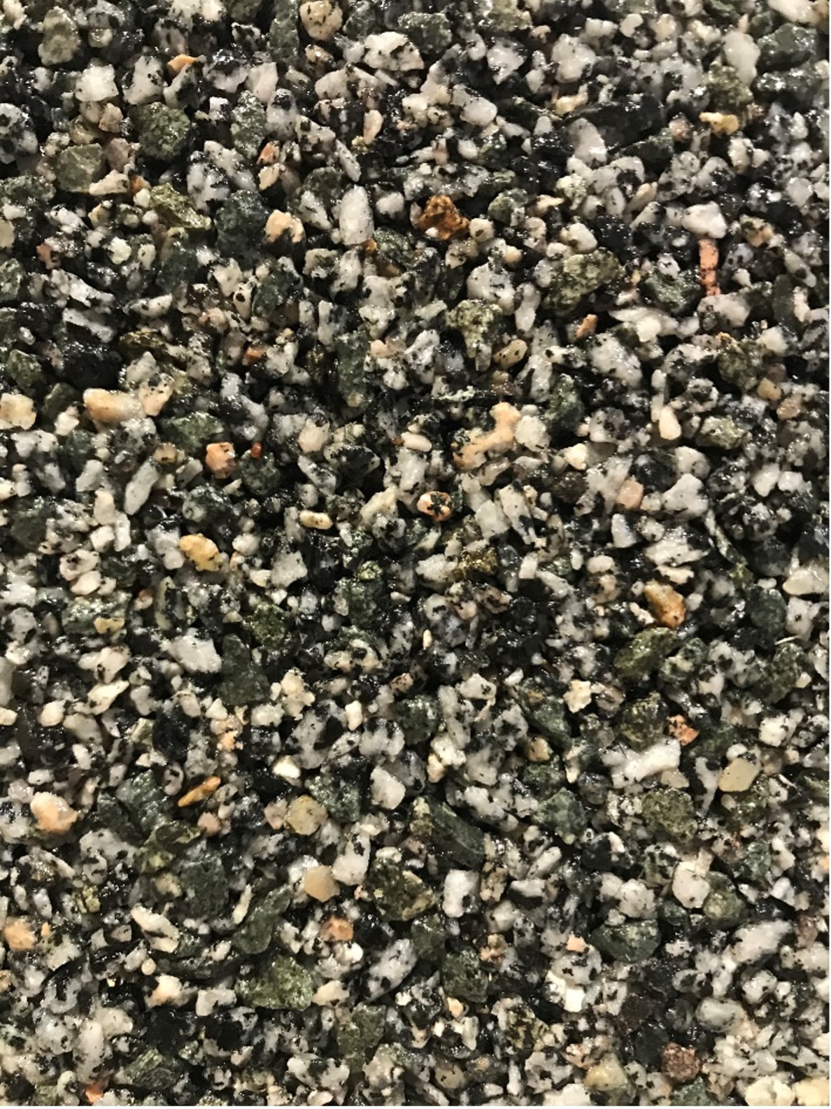 On all our blends, both Traditional and Contemporary, our stone ratio is 75kg of a (2-5mm) aggregate and 25kg of a (1-3mm) aggregate and 5kg binding quartz.